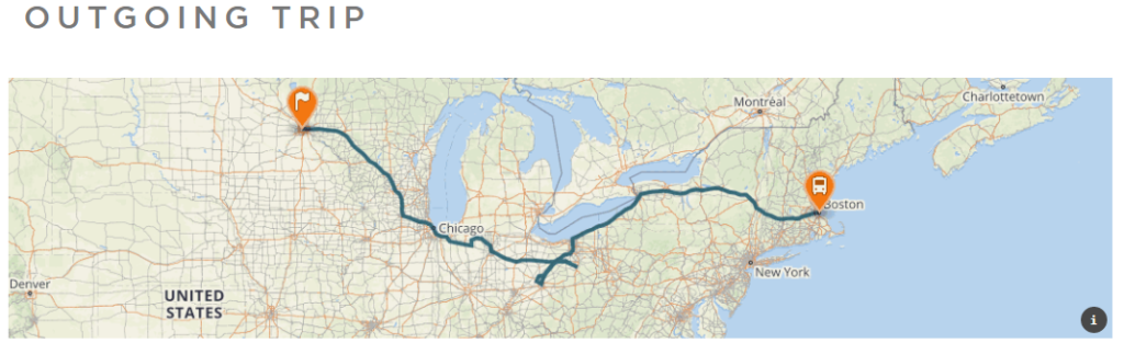 On December 28th, Zach Zenner sealed my fate and earned me a bus ticket. A few days later, the league decided that I’d be heading to sunny Minneapolis. I depart Boston on Greyhound at 7:40 pm Jan 6, I arrive in Cleveland the next morning at 11 am and transfer to a Baron’s Bus, which I ride throughout Ohio and arrive at 9:20 that night. I have 35 minutes to catch my Greyhound bus which takes me the rest of the way to Minneapolis by 6:30 Sunday morning.